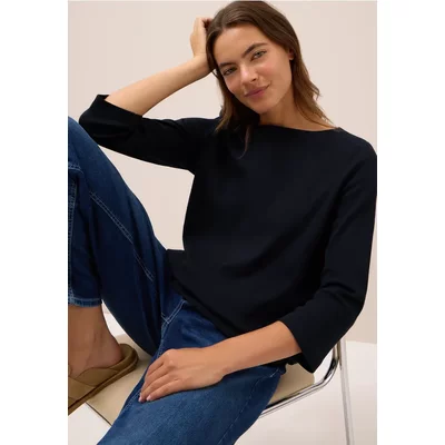Cecil Dames Basic geribd shirt in Blauw