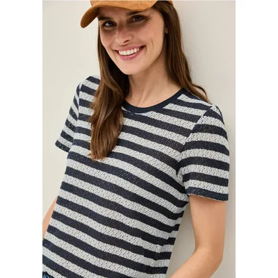 Cecil Dames Gestreept ajour shirt in Blauw