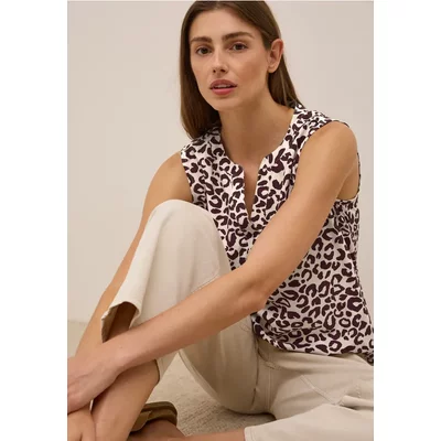 Cecil Dames Gedessineerde blouse met gespleten hals in Blauw