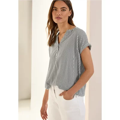 Cecil Dames Gestreepte blouse met korte mouwen in Grijs