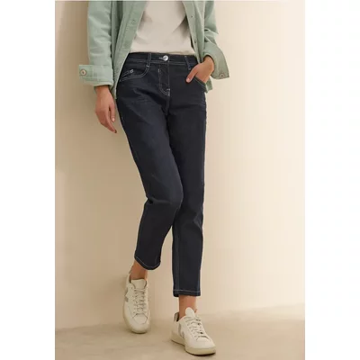 Cecil Dames Jeans met gespoelde wassing in Blauw