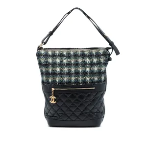 Tweedehands Gequilte Verouderde Kalfshuid en Tweed Casual Stijl Hobo