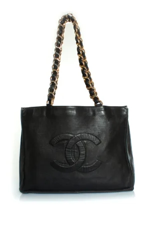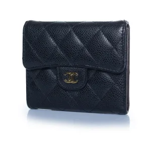 Chanel, CC drievoudige gewatteerde leren portemonnee in zwart