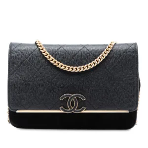 Tweedehands Gekатte Kaviaar En Suède Dame Coco Portemonnee Op Ketting