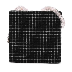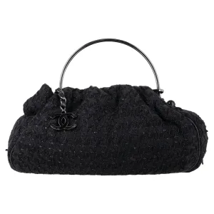 Chanel Tweed gebreide handtas met handvat in zwart katoen