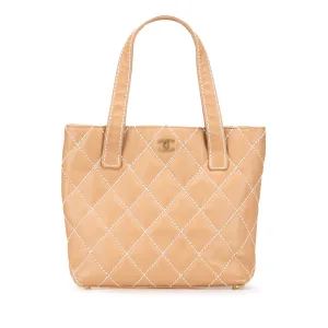Tweedehands Lamsleer Geëmbossede Cc Camellia Tote