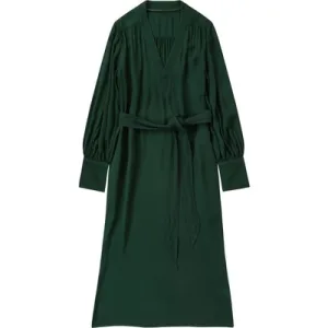 Closed Belted V Neck Dress Fern Green