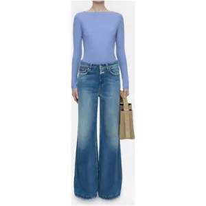 Closed Straight Neck Longsleeve T-shirts Blue Horizon