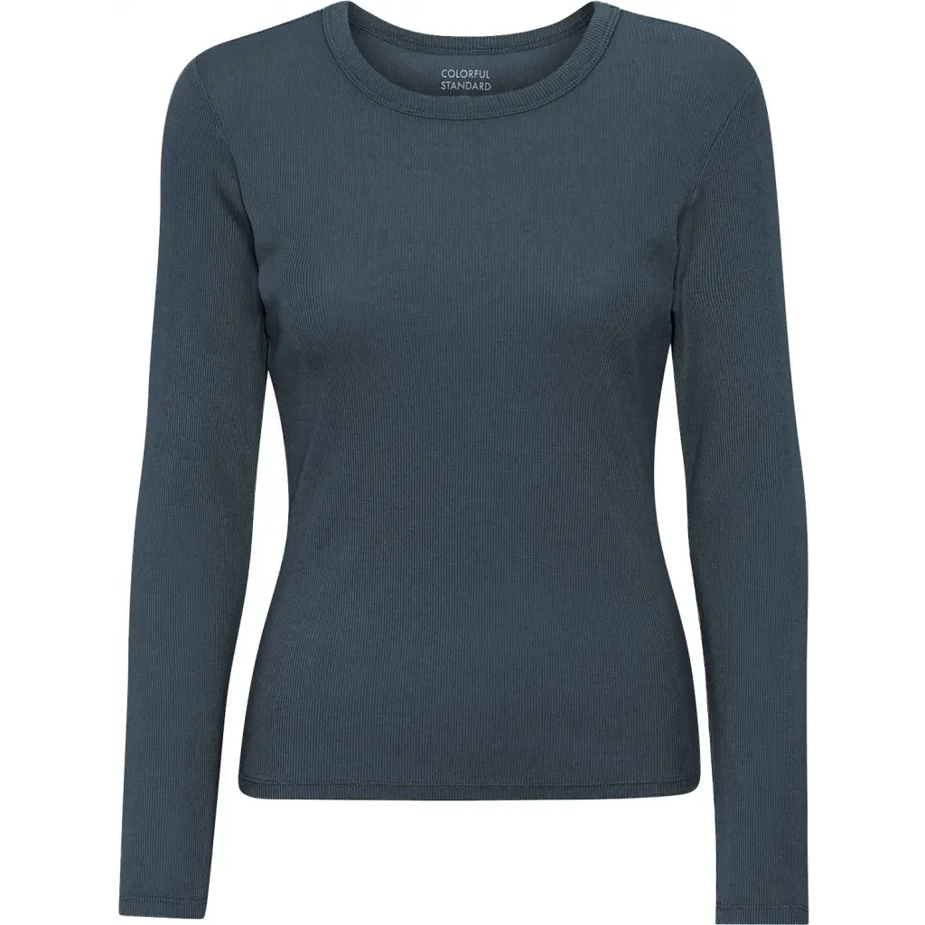Geribd dames-T-shirt met lange mouwen Colorful Standard Organic petrol blue