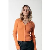 Colourful Rebel Nori Fine Knit Cropped Longsleeve Polo Tangerine