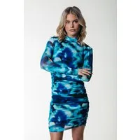 Colourful Rebel Juda Tie Dye Mesh Gathered Dress Ls Blue
