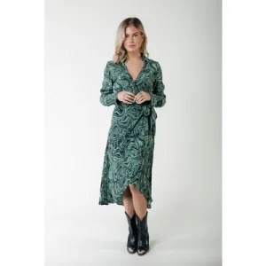 Colourful Rebel Lea Liquid Paint Wrap Midi Dress Ls Soft Green