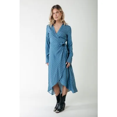 Colourful Rebel Lea Small Geo Wrap Midi Dress Ls Dark Petrol