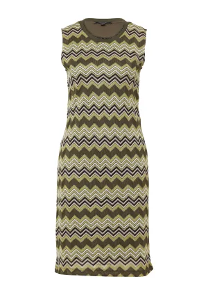 COMMA Gebreide jurk kaki / olijfgroen / wit