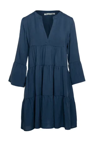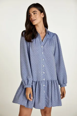 Denim jurk met geplooide naden