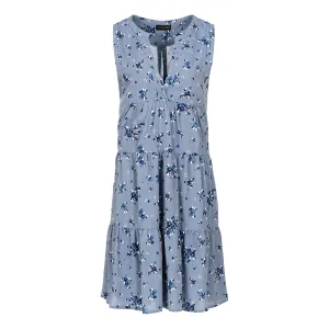 Korenbloemblauwe gebloemde viscose jurk