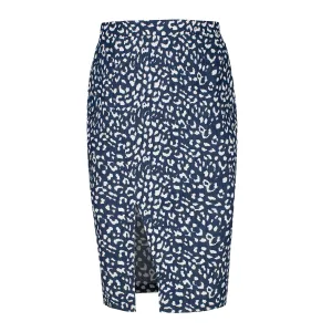 Blauwe jurk met bloemenprint en zijsplitten