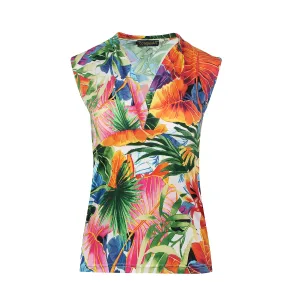 Oranje mouwloze aansluitende top met V-hals – zachte viscosemix