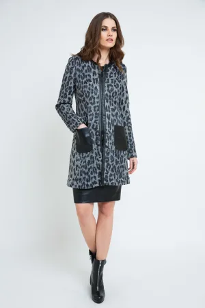 Lange Zalm jas van imitatiemouflon met riem