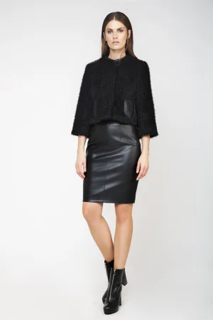Zwarte wintermantel van geweven stof