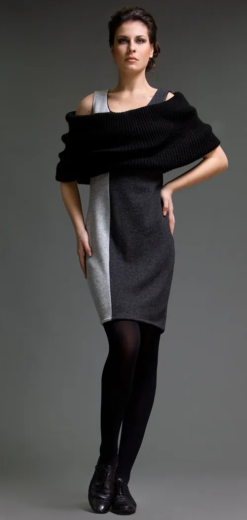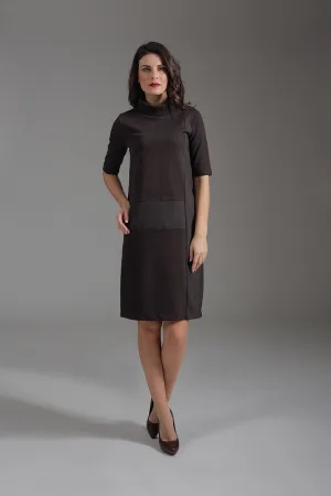 Jurk met Elleboogmouwen van Geweven Punto di Roma Stof, Aansluitend Model met Opstaande Kraag