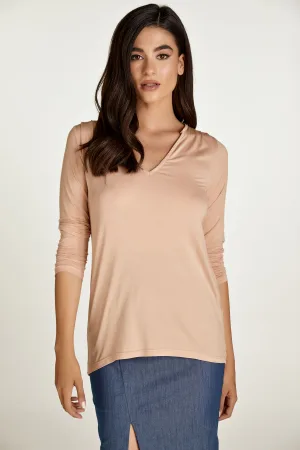 V-hals Empire-lijn Top van Rekbare Jersey met Plooien