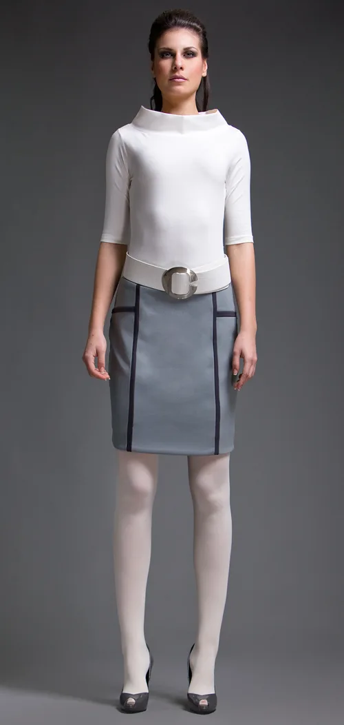 Grijze Punto di Roma Minirok met Donkergrijze Decoratieve Rand