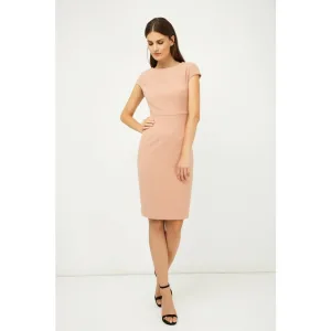 Effen Jurk met Kapmouwen in Oudroze Kleur.