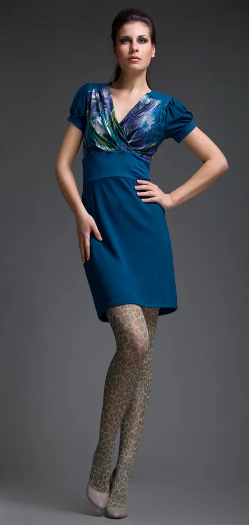 Jurk met rechte korte mouwen en opstaande kraag