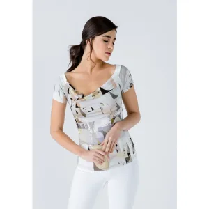 Bedrukte spaghettitop in ecru