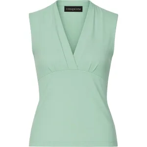 Zilvergroene mouwloze aansluitende top met V-hals – zachte viscosemix