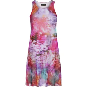 Mouwloze A-lijnjurk voor dames – abstracte veelkleurige print, gevoerd katoen met een bovenlaag van transparant nylon