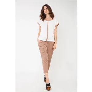 Koraalkleurige top met korte kanten mouwen