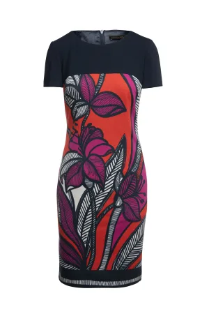 Gebloemde katoenen kokerrok in rode, blauwe en groene tinten