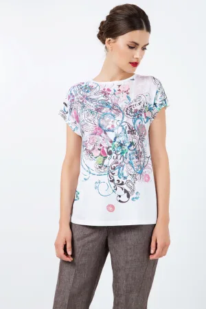 Oversized katoenen ripstop eivormige blouse met etnische print