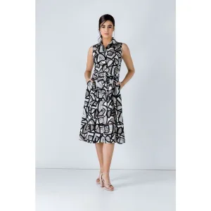 Mouwloze jurk met print en contrastdetail