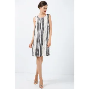 Gestreepte rechte jurk met riem