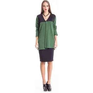 Wollen Zijde Acrylmix Geweven Rechte Jurk met Elleboogmouwen en Faux Zakken