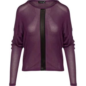 Mauve top met vleermuismouwen en details van imitatieleer