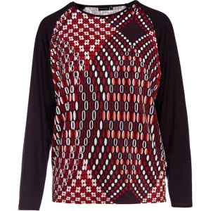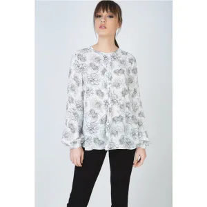 Bloementop met lange mouwen, ronde hals en knoopsluiting in de nek van Conquista Fashion