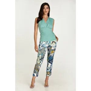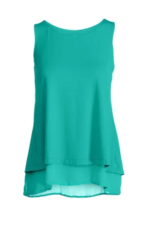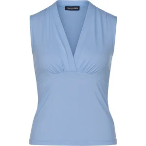 Blauwe mouwloze aansluitende top met V-hals, zachte viscosemix