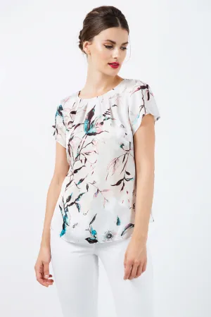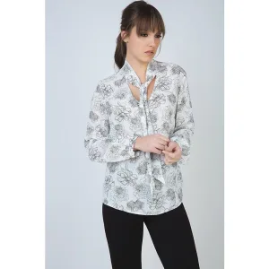 Witte bloemenviscoseblouse met uitgesneden kraag