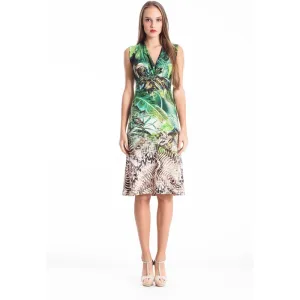 Elastische Gabardine-kokerrok tot onder de knie met luipaardprint
