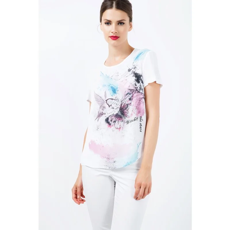 Blouse met gestrikte voorkant in azuurblauw – 100% viscose-voile