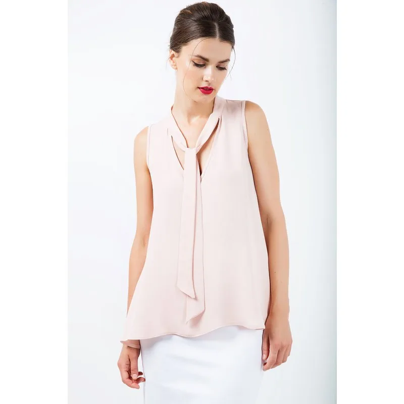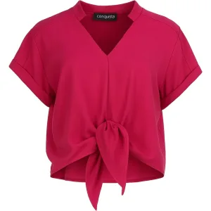Blouse met gestrikte voorkant in fuchsia – 100% viscose-voile