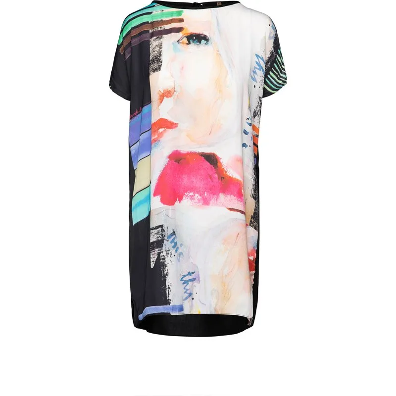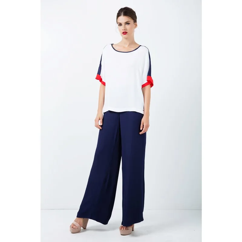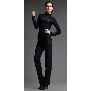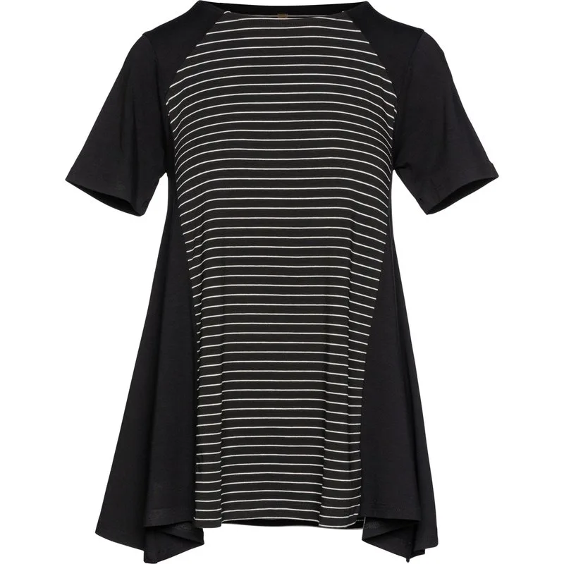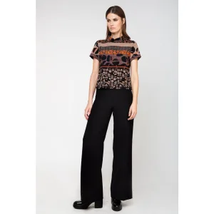 Zwarte Top met Voile mouwen in Stretch Jersey Duurzame stof.