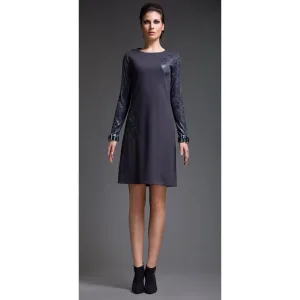 Lange Mouw Punto di Roma Jurk met Printleren Detail