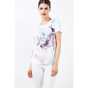 Witte top met korte mouwen en rood en blauw detail