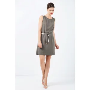 Rechte kakikleurige jurk met riem