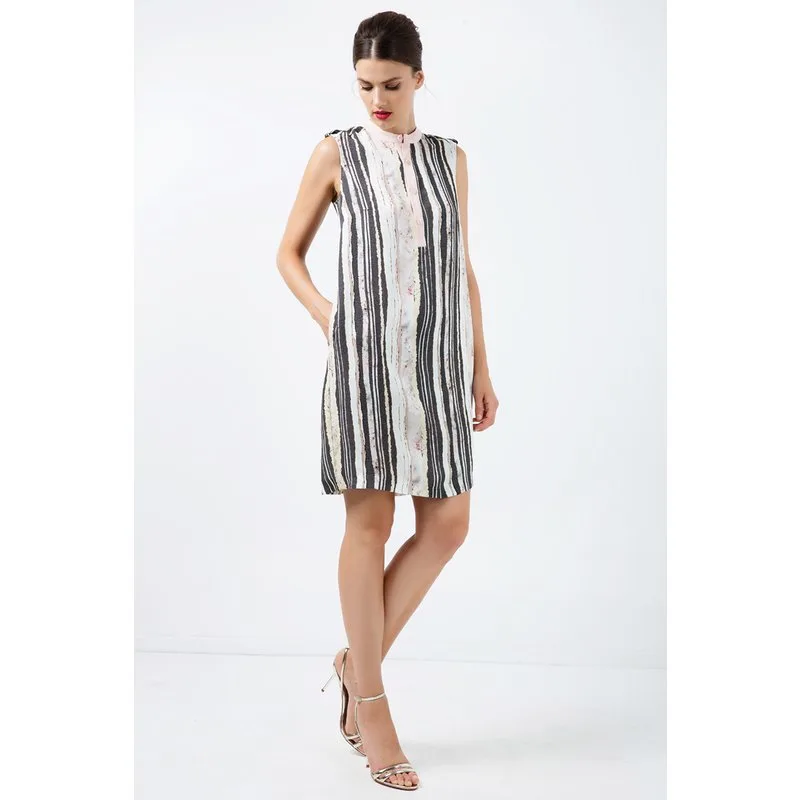 Gestreepte rechte jurk met knoopdetail
